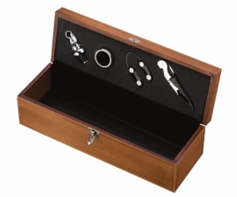 Caixa para vinho com peças para abrir vinho em madeira certificada