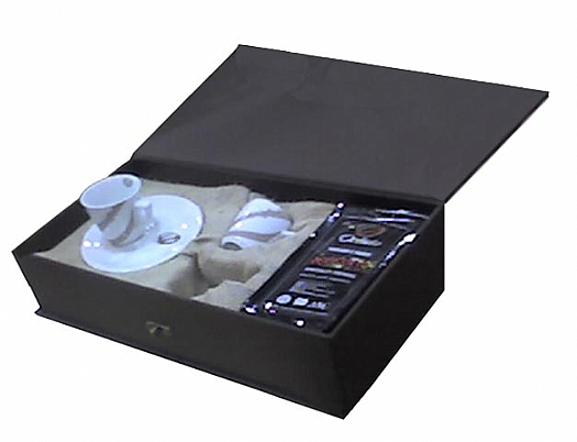 Kit com dois jogos de xícaras com café em embalagem de papel rígido
